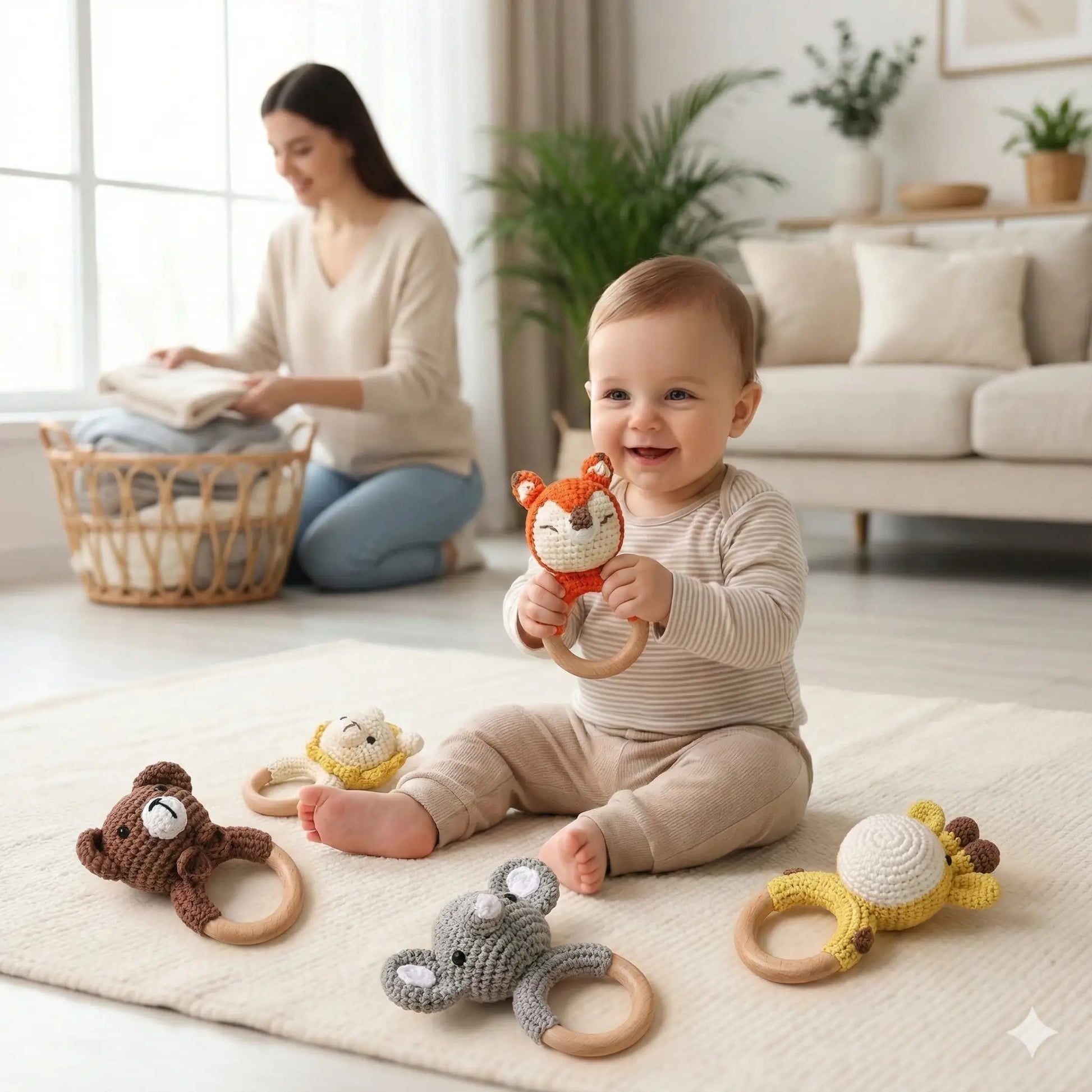 Découvrez notre hochet bébé conçu spécialement pour accompagner votre petit trésor dans ses premiers mois de découverte. Comment apaiser bébé pendant ses poussées dentaires tout en stimulant son développement? Notre hochet combine douceur tactile et fonctionnalités d'éveil pour transformer les moments difficiles en instants de joie partagée. Sa prise en main ergonomique permet à votre enfant d'explorer le monde qui l'entoure en toute autonomie.